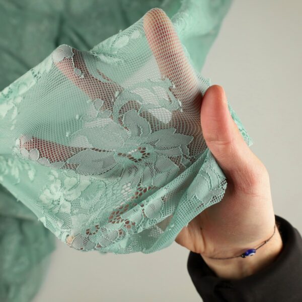 Dettaglio organza lucida salvia - trasparenza e riflessi