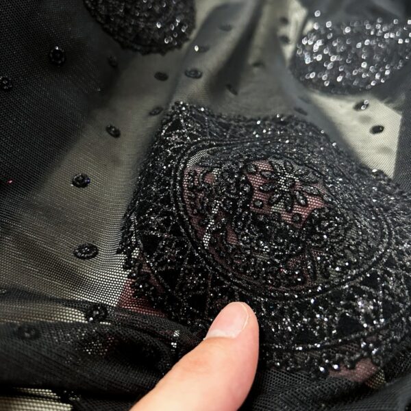Tulle Elastico Fantasia Esfera Floccato Glitter