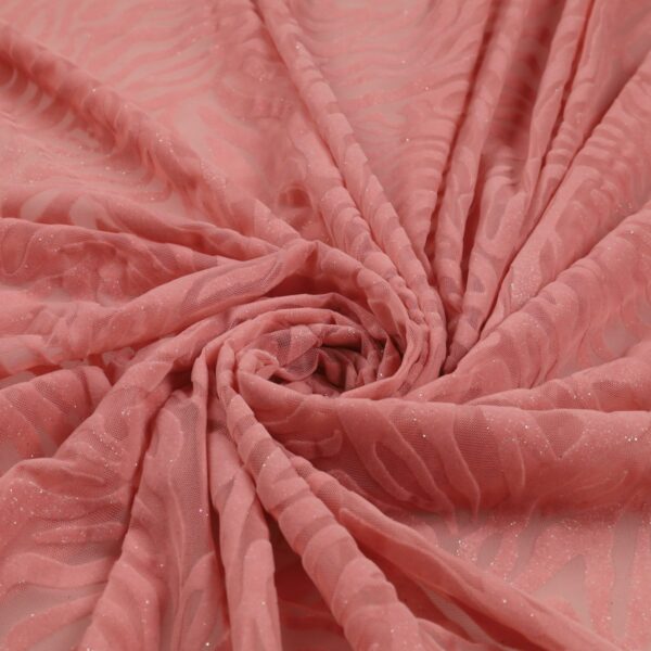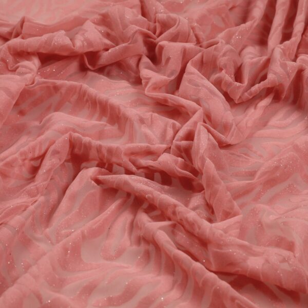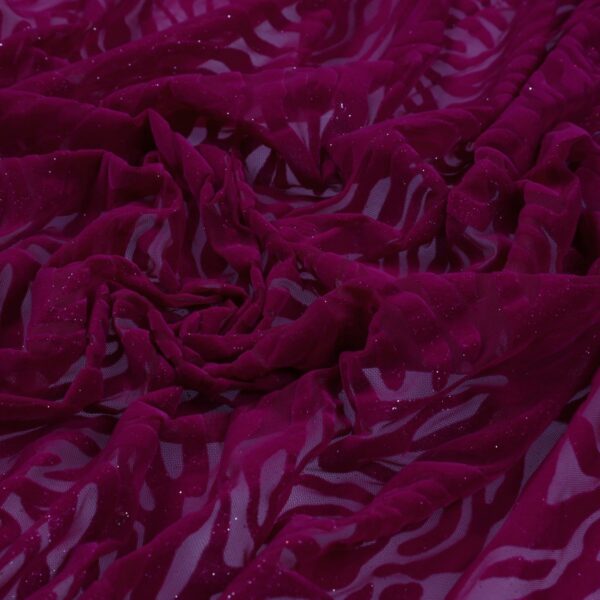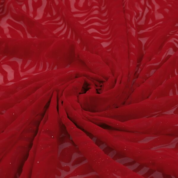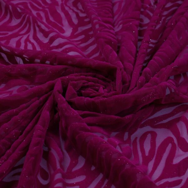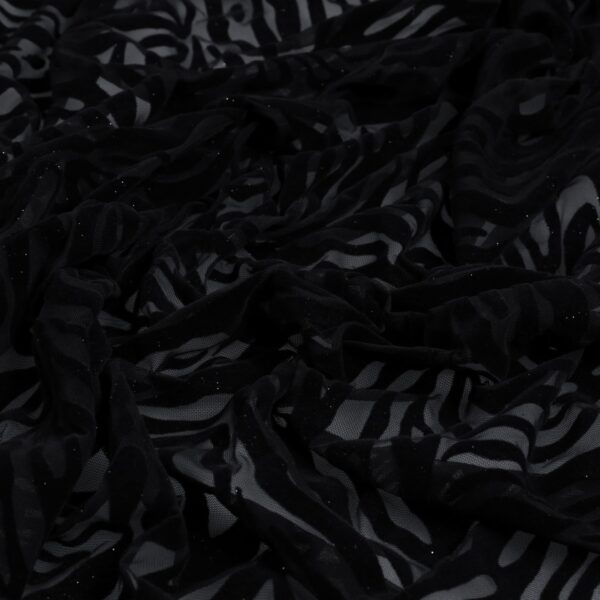 Tessuto Mesh (Tulle) Bielastico Floccato Glitter Argento "Zebrato"