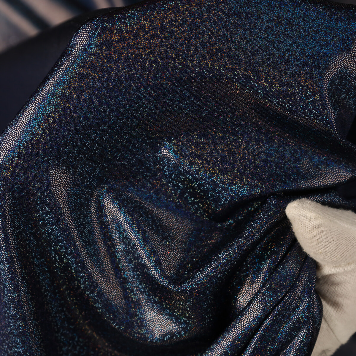 Lycra Fantasia Glitter Foil New – al Metro – Blu Navy