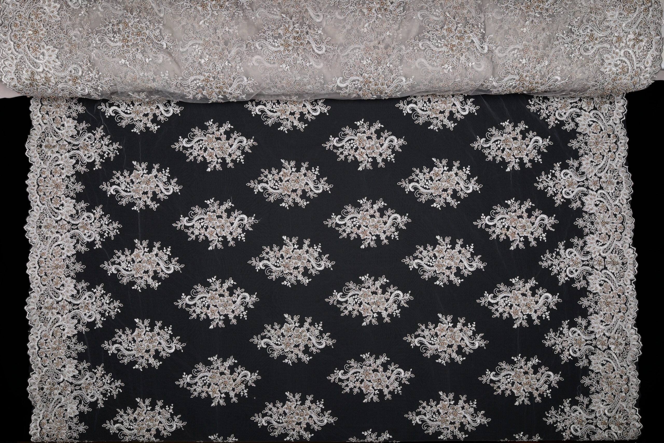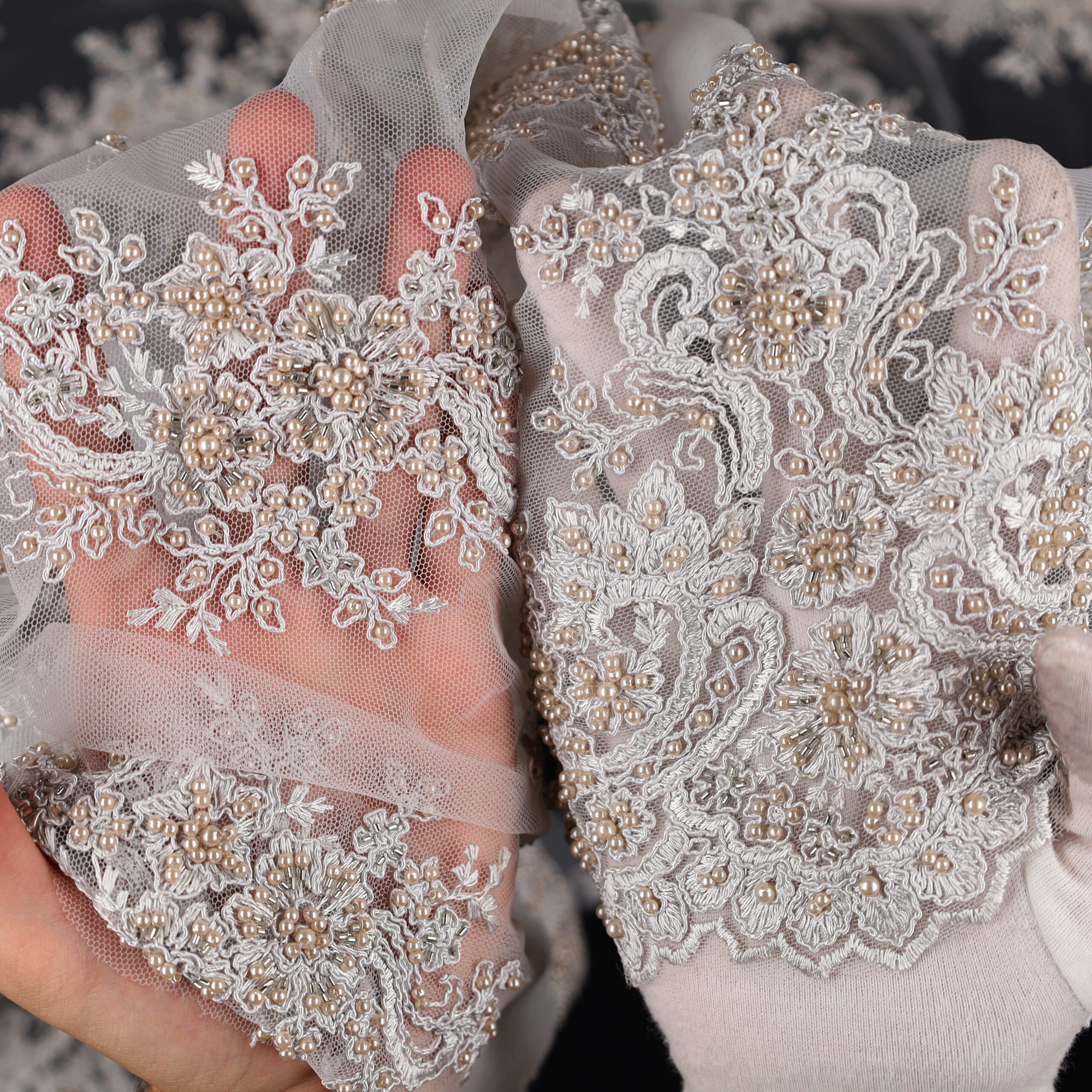 • Utilizzo: Spiccata attitudine per abiti strutturati e sovrapposizioni su basi come raso, mikado o tulle.