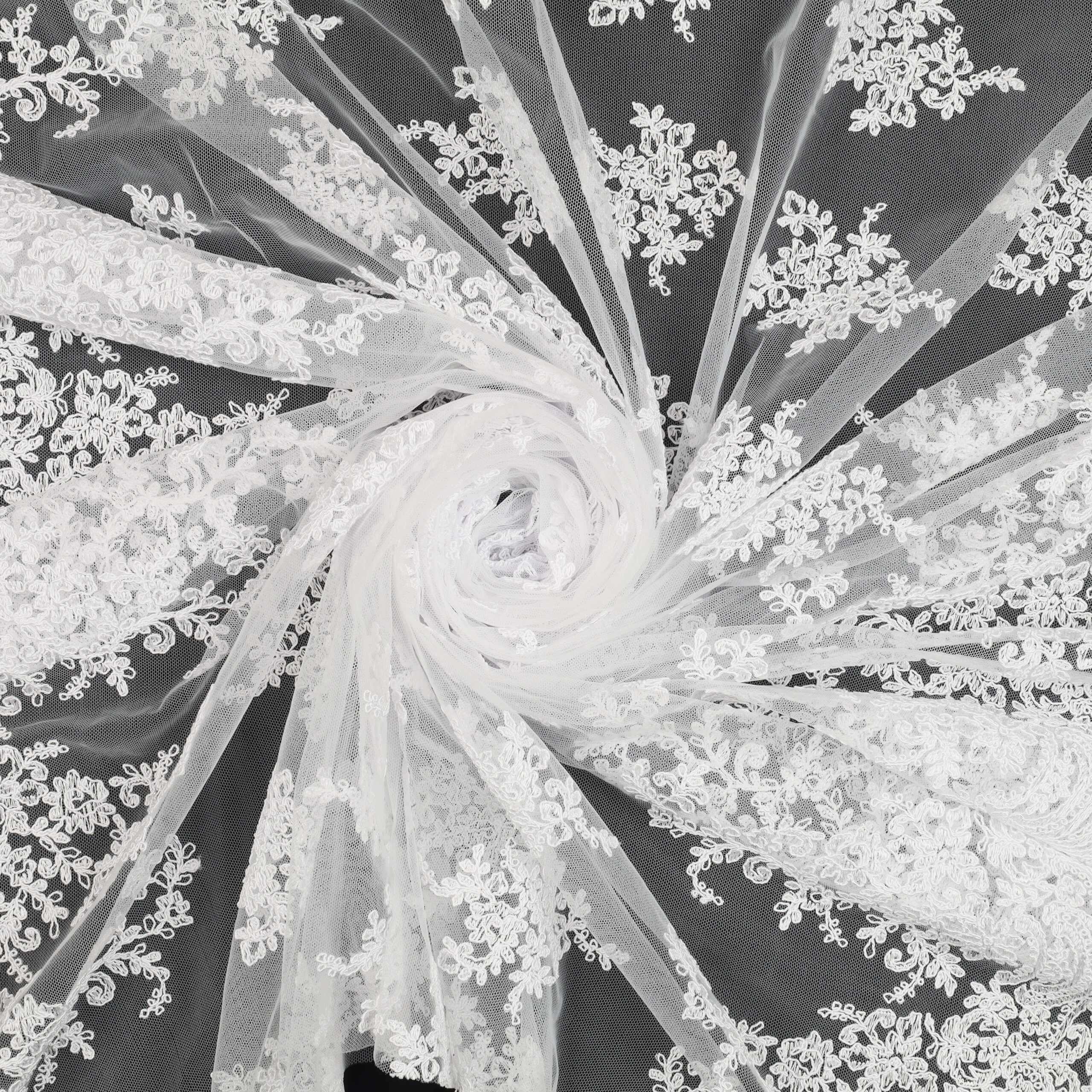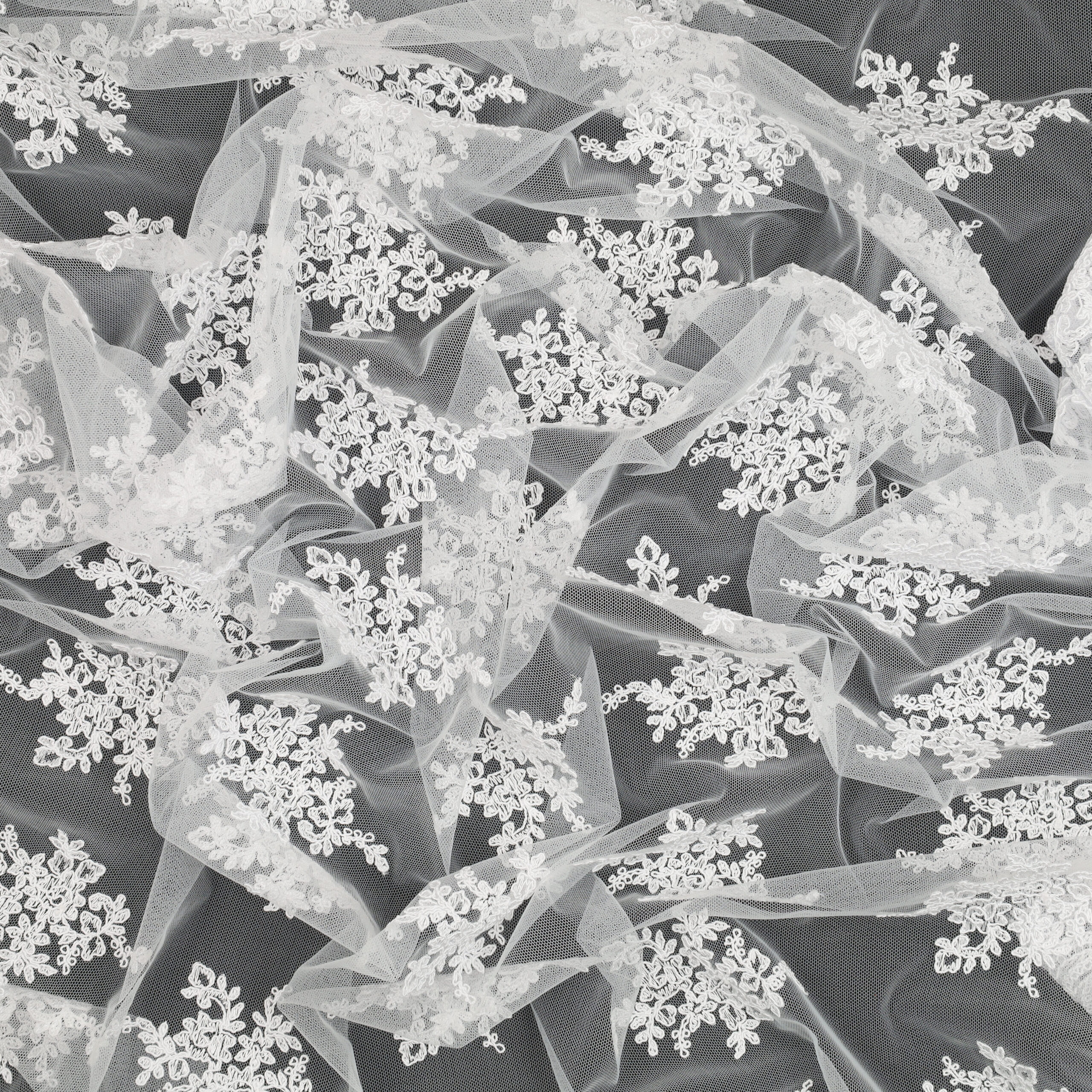 • Utilizzo: Spiccata attitudine per abiti strutturati e sovrapposizioni su basi come raso, mikado o tulle.