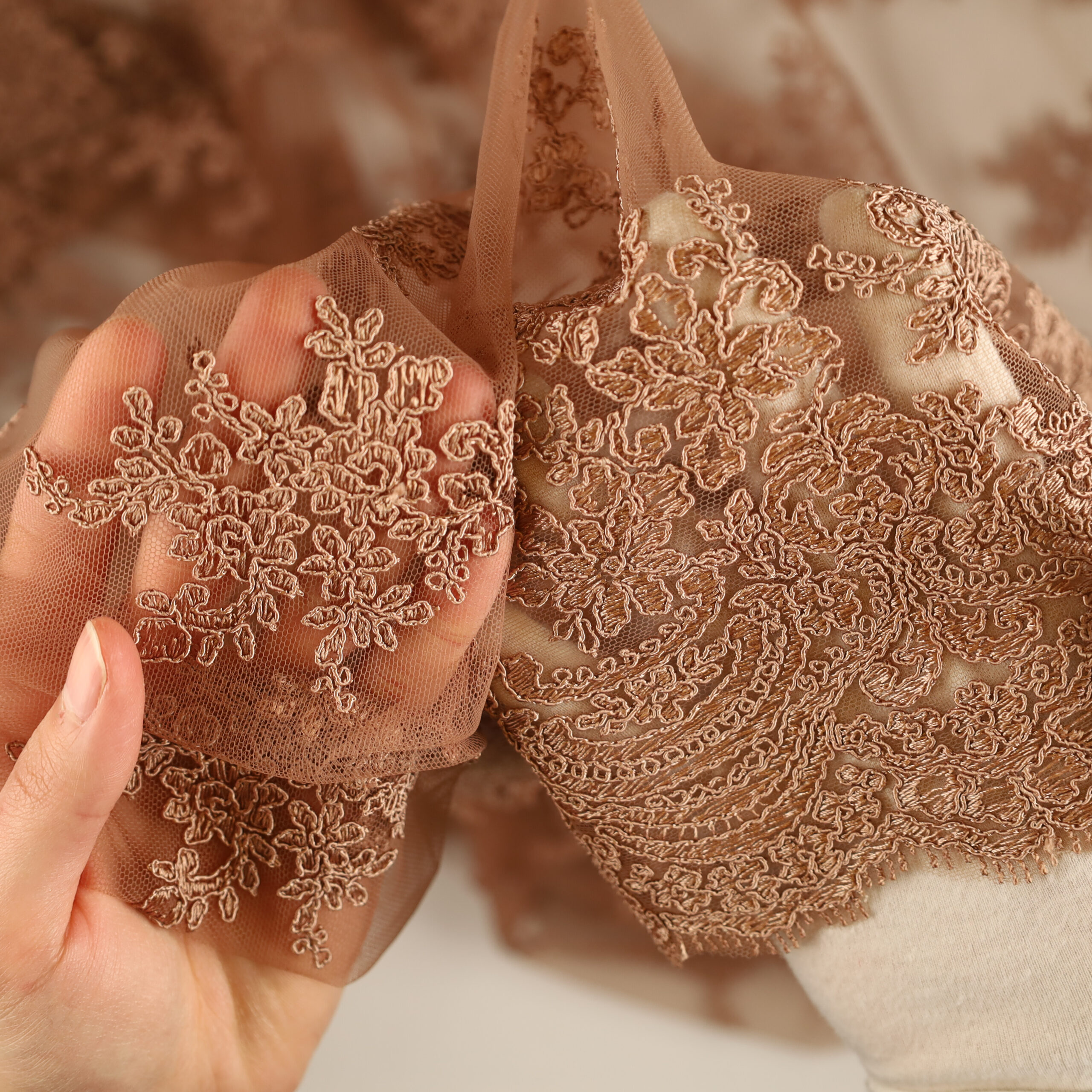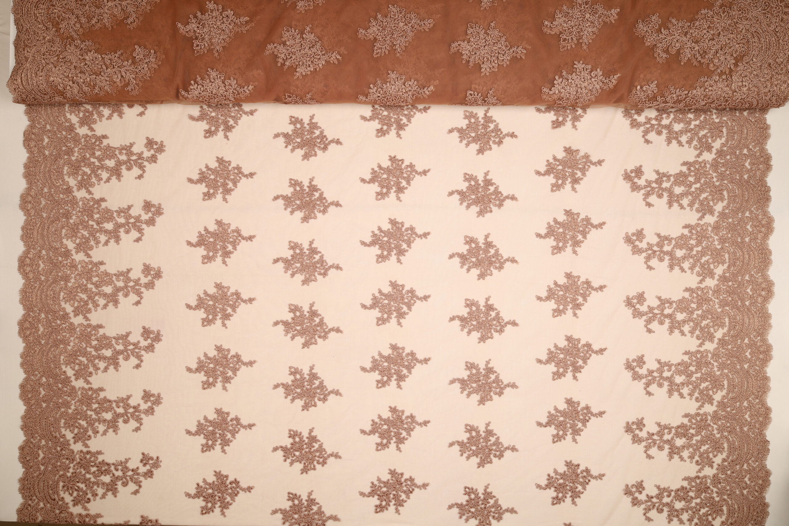 Caratterizzato da una struttura ricca e materica, il nostro macramè è la scelta d’elezione per designer e sarti che mirano a creare abiti da sposa indimenticabili, corpetti scultura e dettagli per cerimonie di lusso. La sua trasparenza sofisticata e i motivi floreali definiti donano volume e movimento, trasformando ogni creazione in un capolavoro di raffinata femminilità.