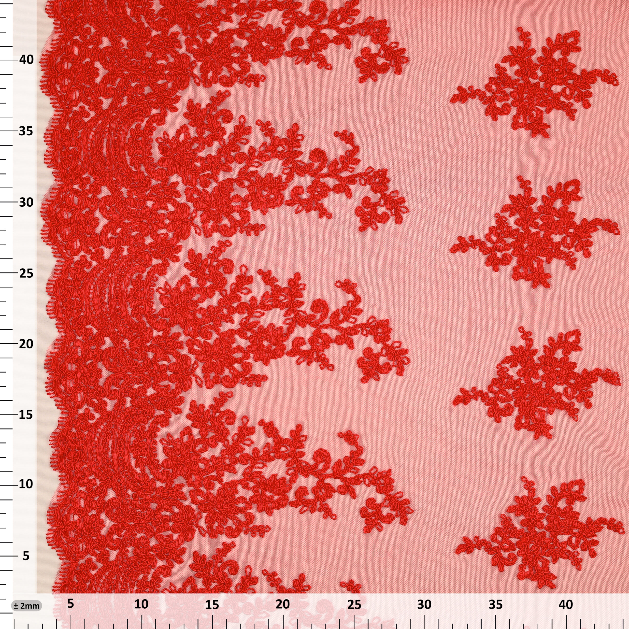 • Pizzo Macramè Pregiato - Fantasia Giglio - al Metro - Rosso