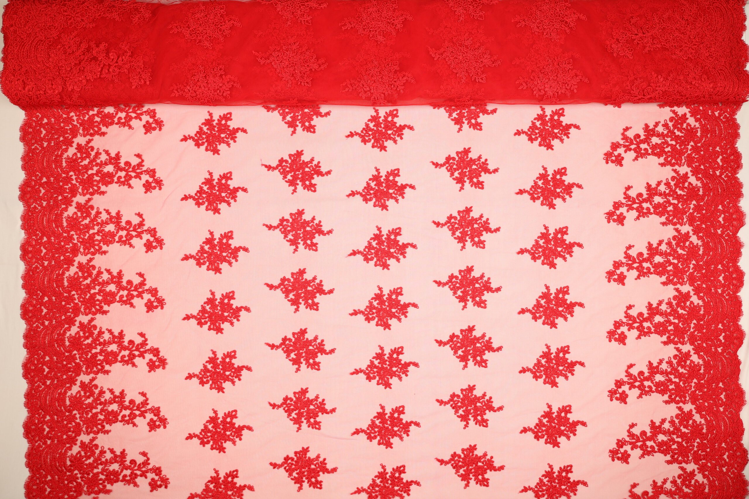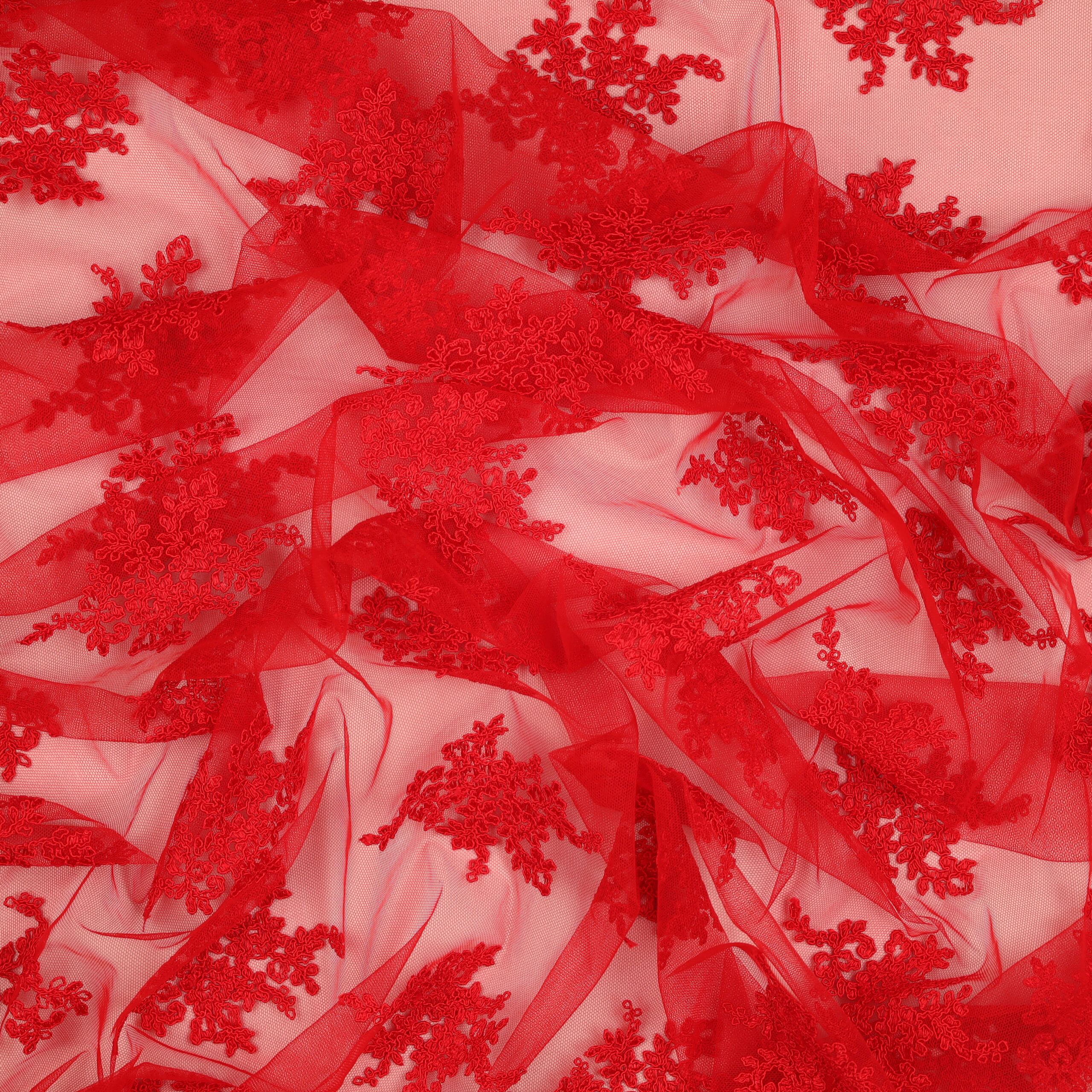 Home Tipi di Tessuto Macramè Pizzo Macramè Pregiato – Fantasia Giglio – al Metro – Rosso