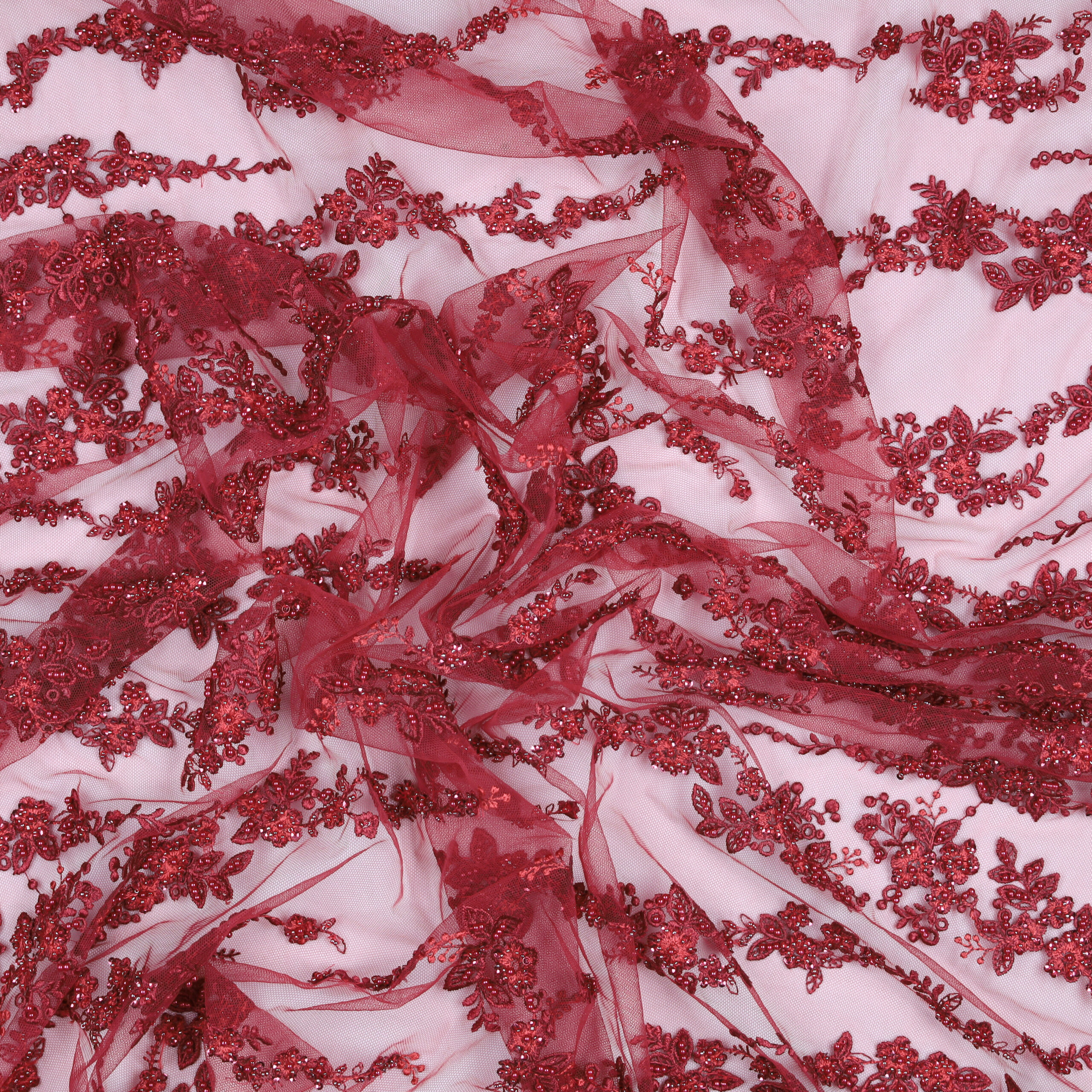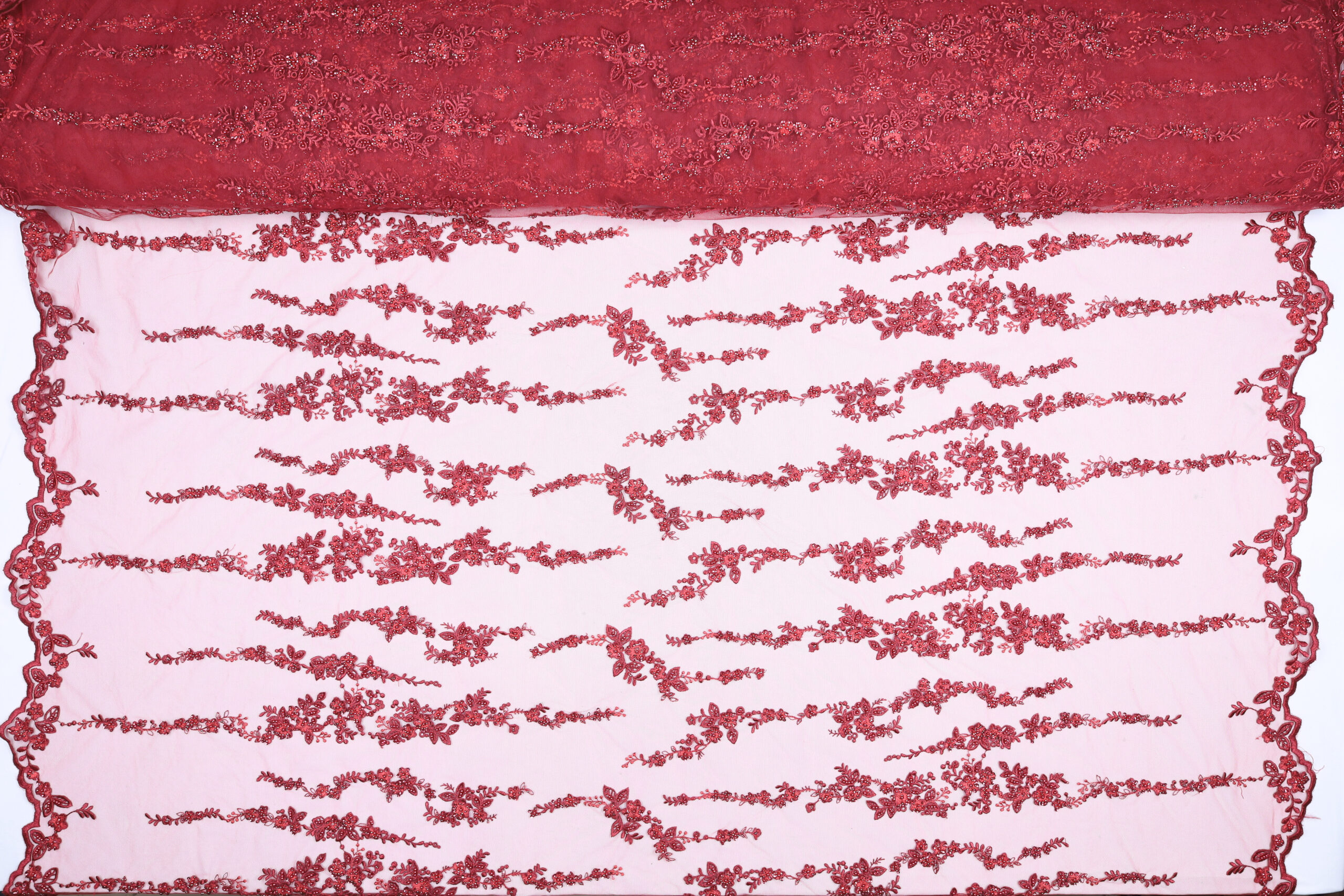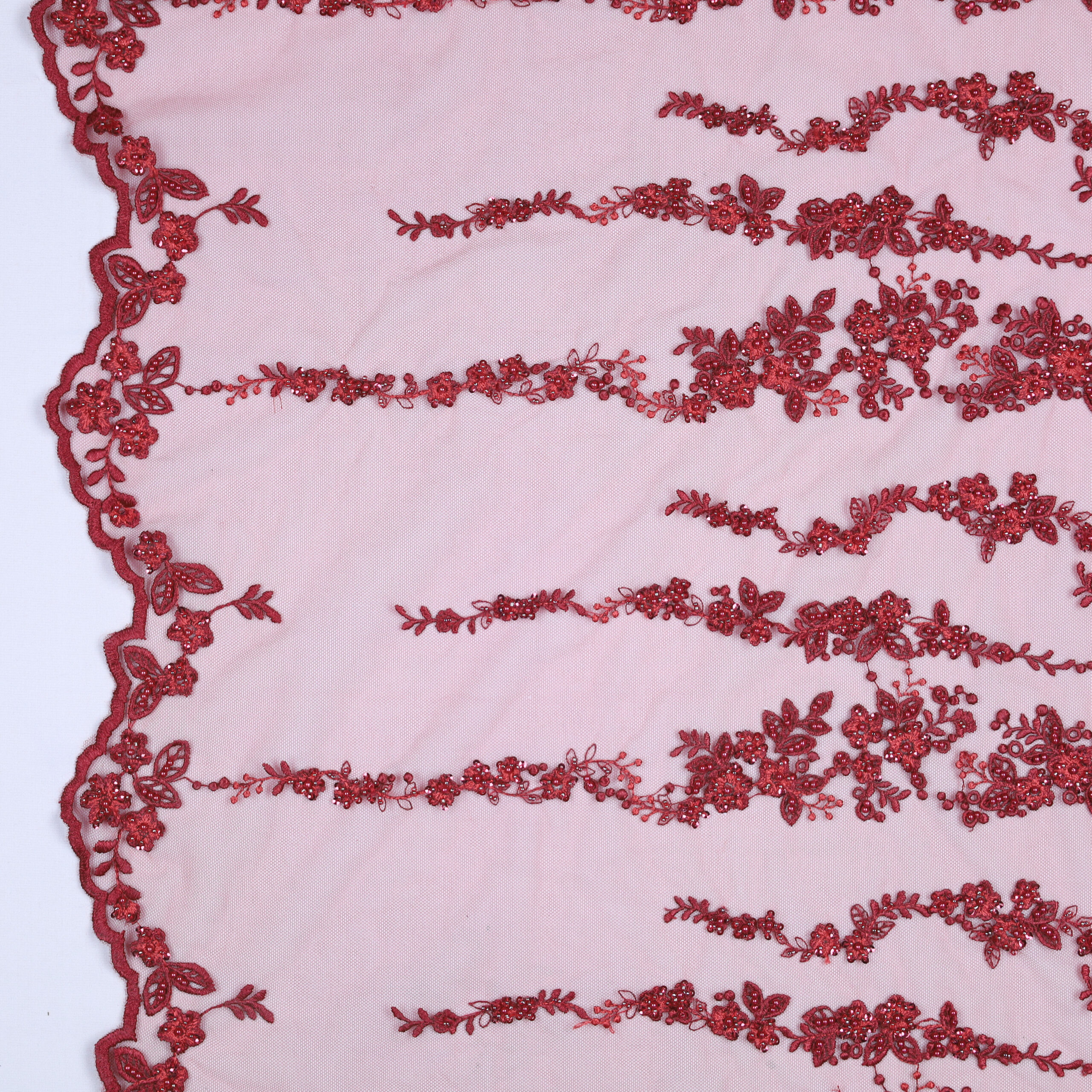 Home Tipi di Tessuto Macramè Pizzo Macramè Pregiato – Fantasia Linea Fiorita – al Metro – Bordeaux