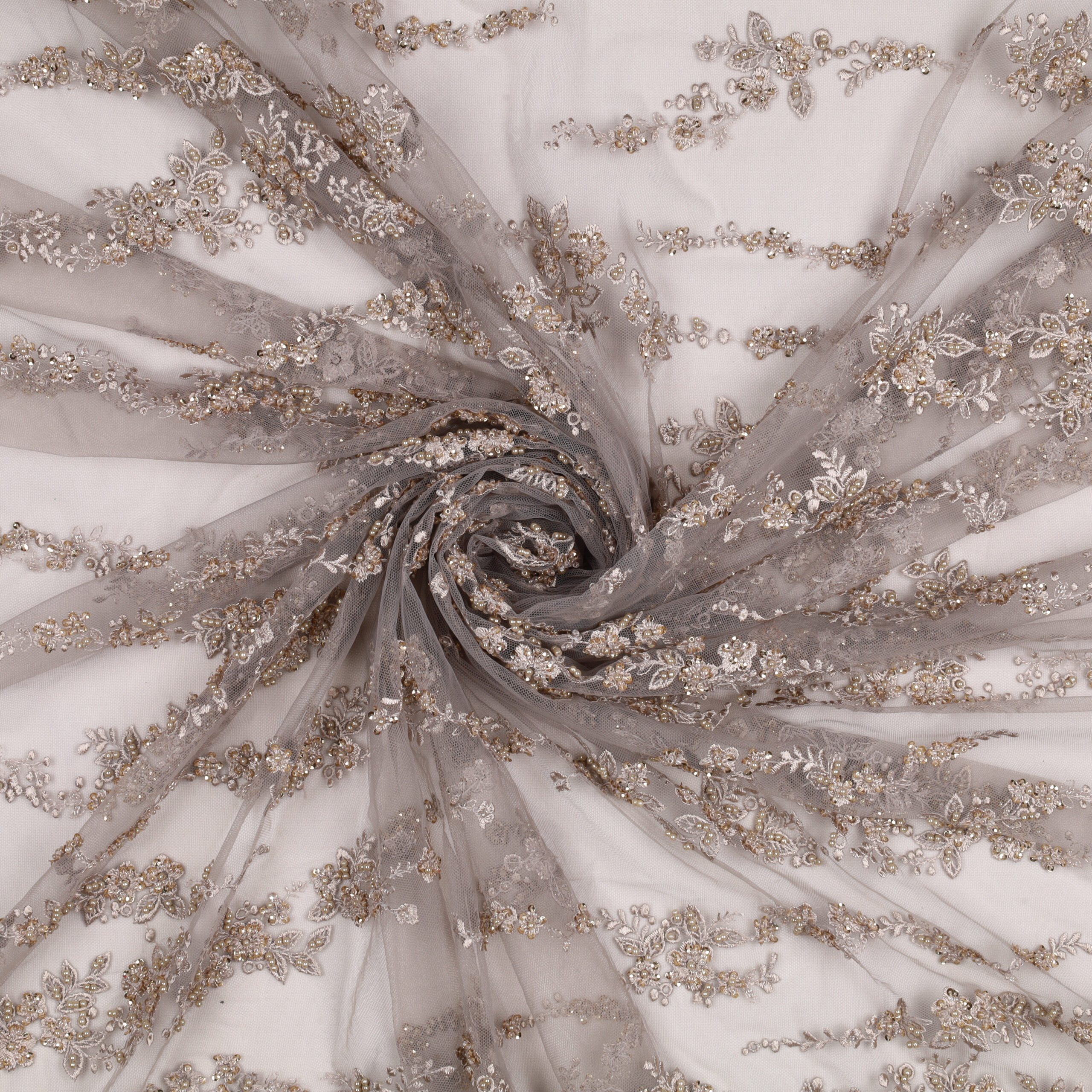 - Utilizzo: Spiccata attitudine per abiti strutturati e sovrapposizioni su basi come raso, mikado o tulle.