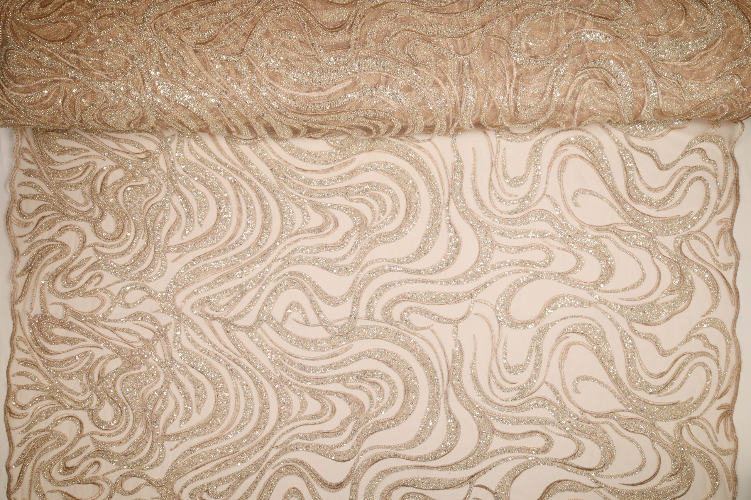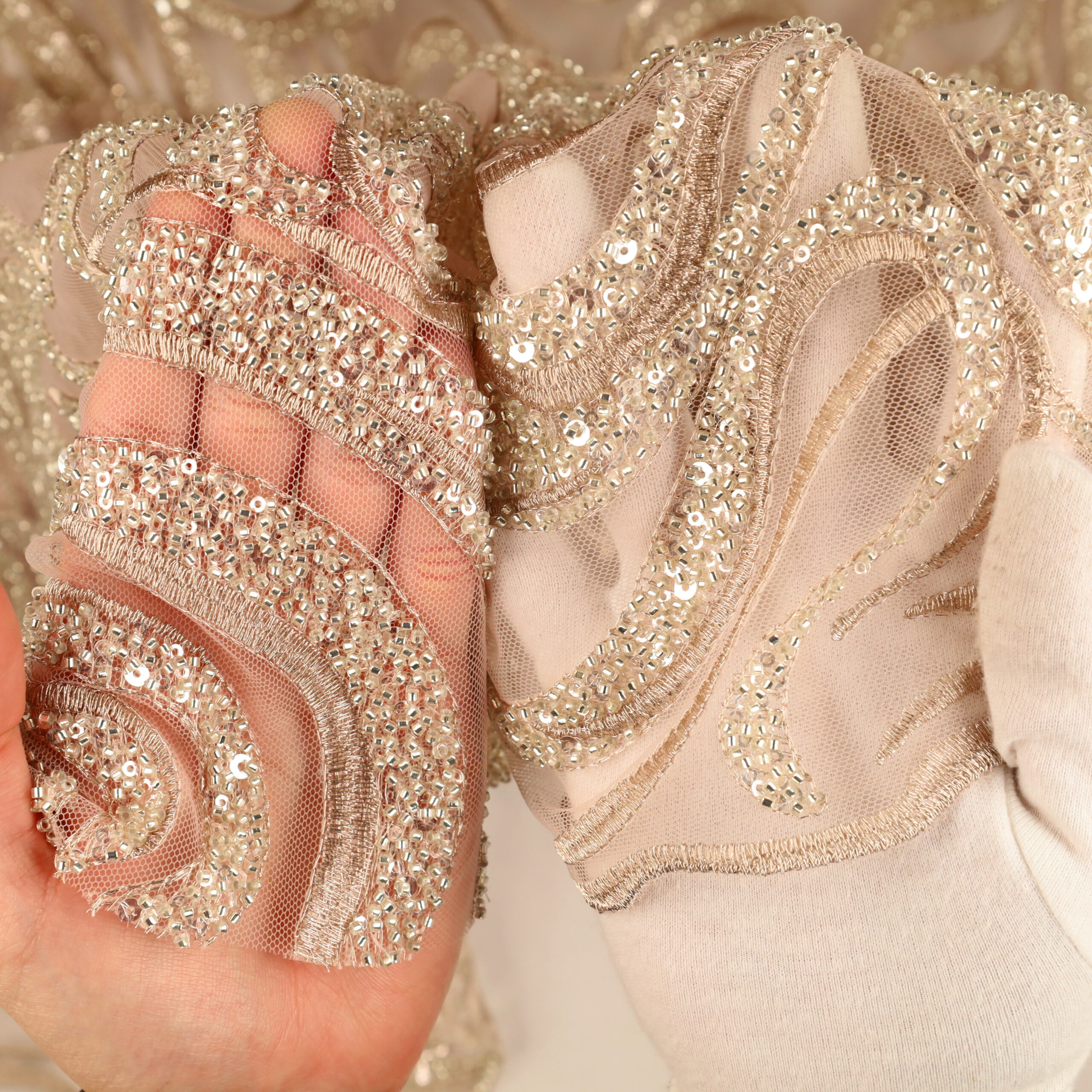 • Utilizzo: Spiccata attitudine per abiti strutturati e sovrapposizioni su basi come raso, mikado o tulle.
