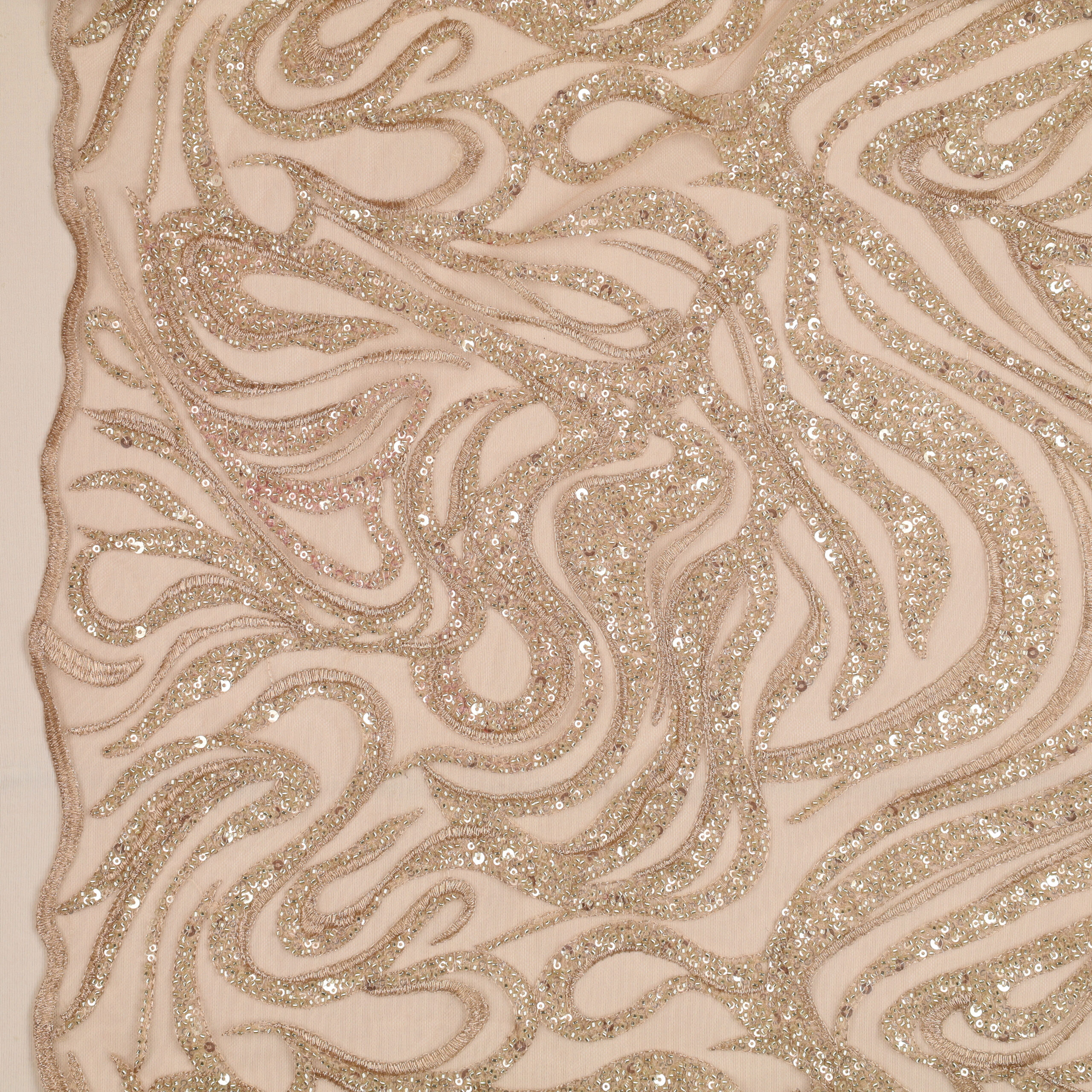 Home Tipi di Tessuto Macramè Pizzo Macramè Pregiato – Fantasia Onde – al Metro – Nudo Chiaro