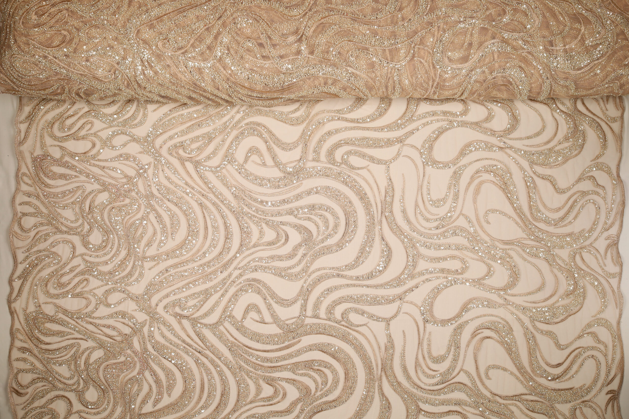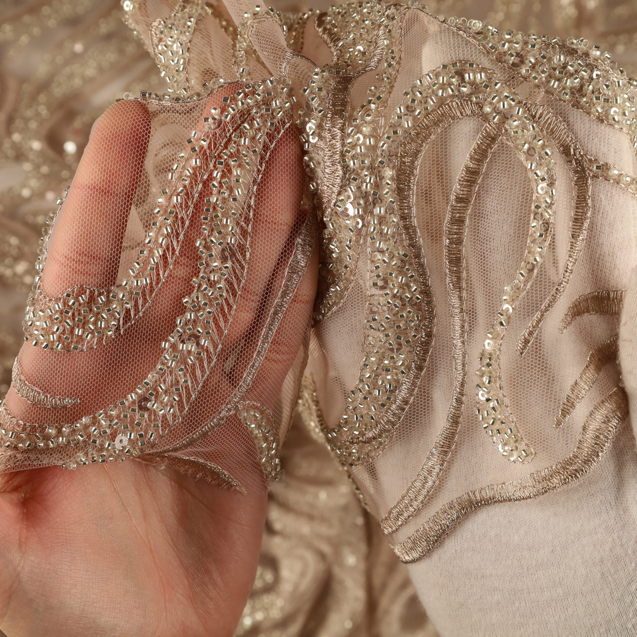 • Utilizzo: Spiccata attitudine per abiti strutturati e sovrapposizioni su basi come raso, mikado o tulle.