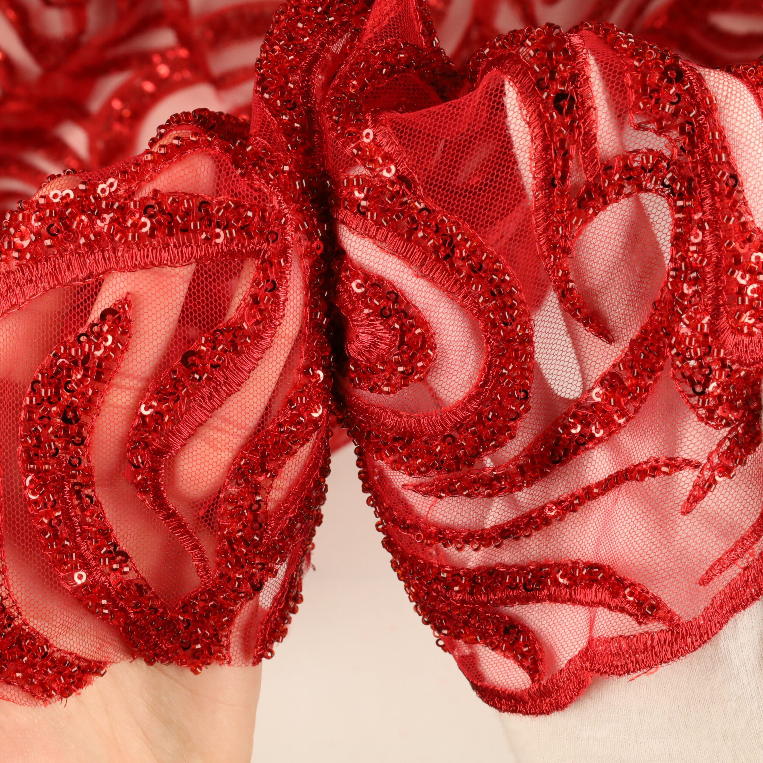 • Utilizzo: Spiccata attitudine per abiti strutturati e sovrapposizioni su basi come raso, mikado o tulle.