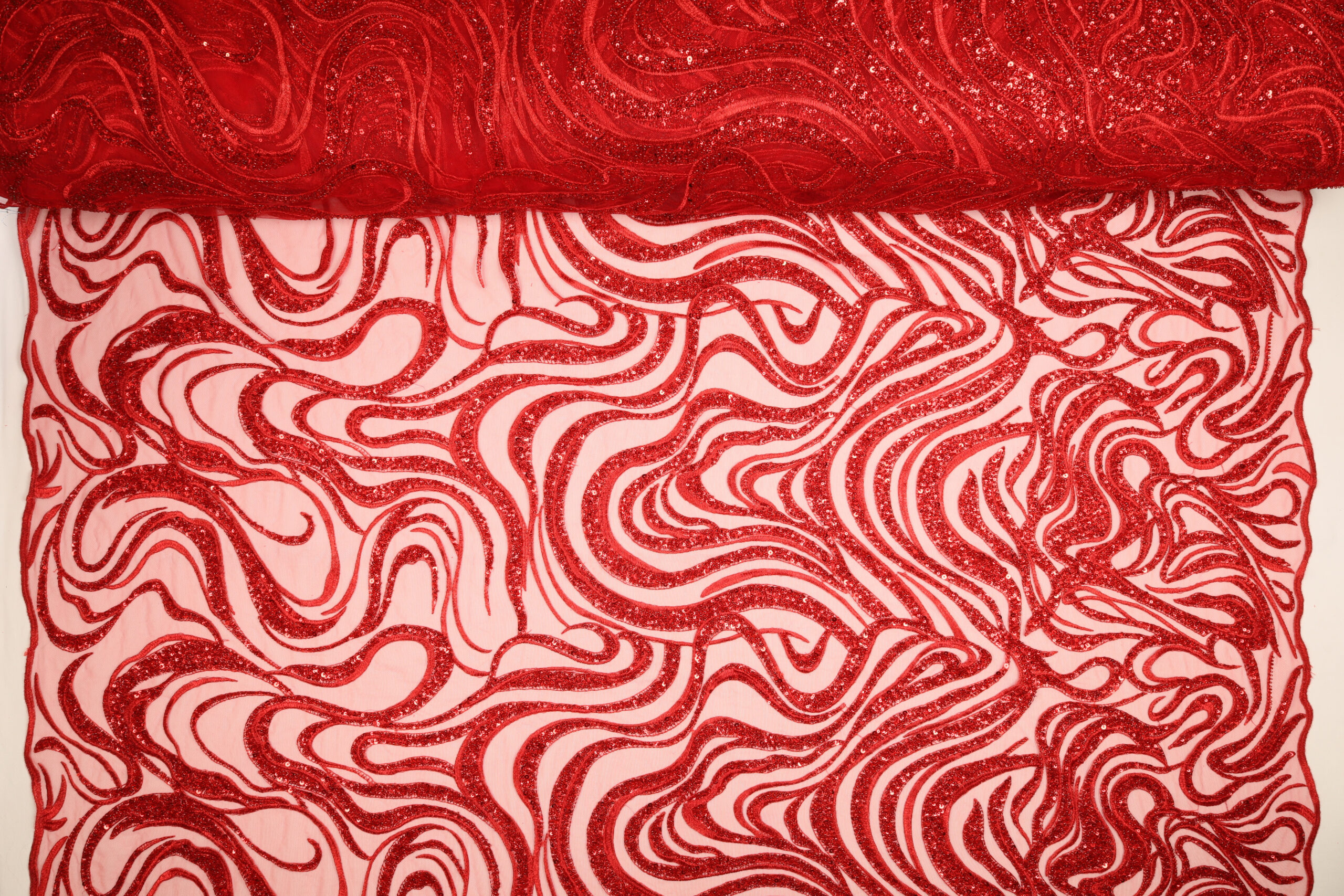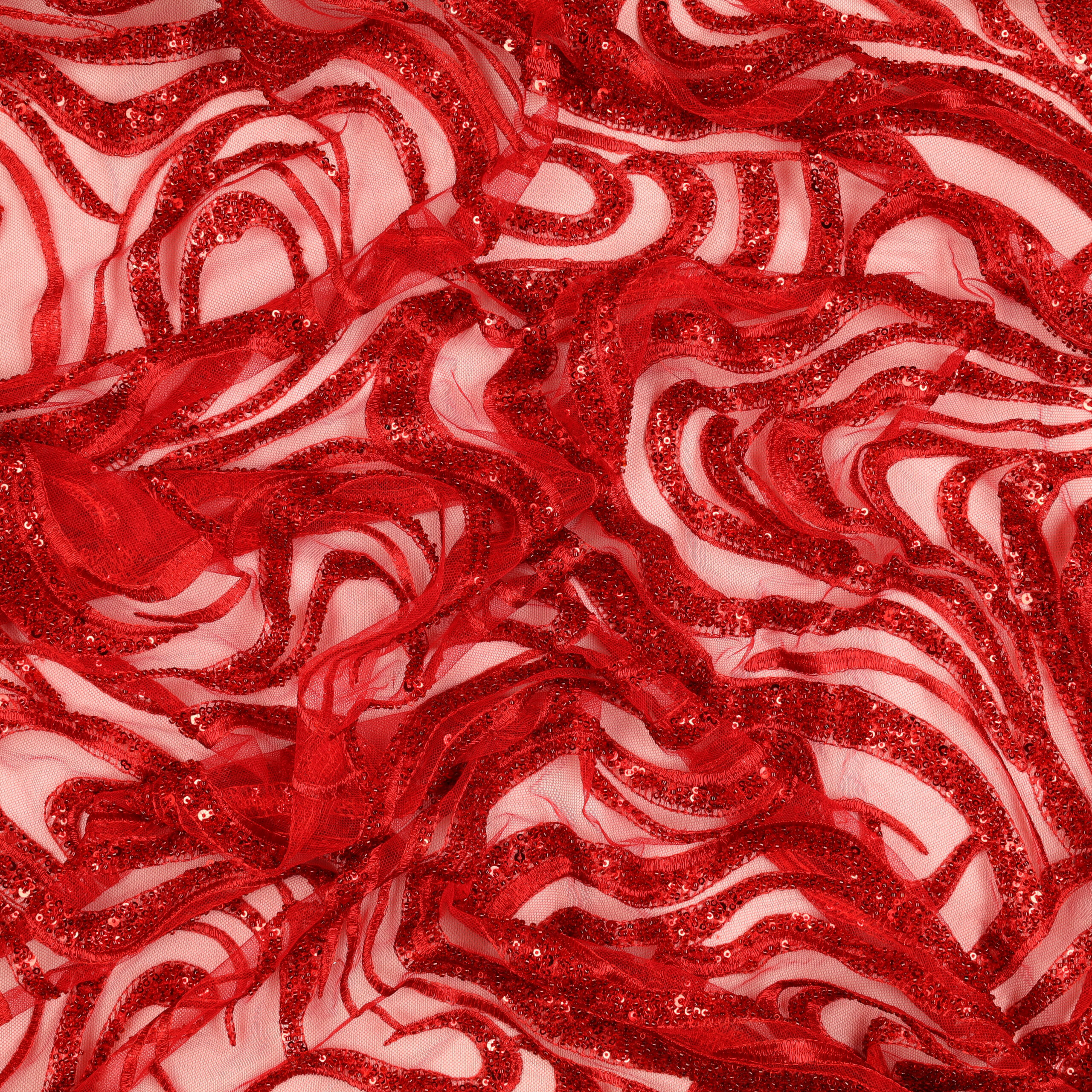 Home Tipi di Tessuto Macramè Pizzo Macramè Pregiato – Fantasia Onde – al Metro – Rosso