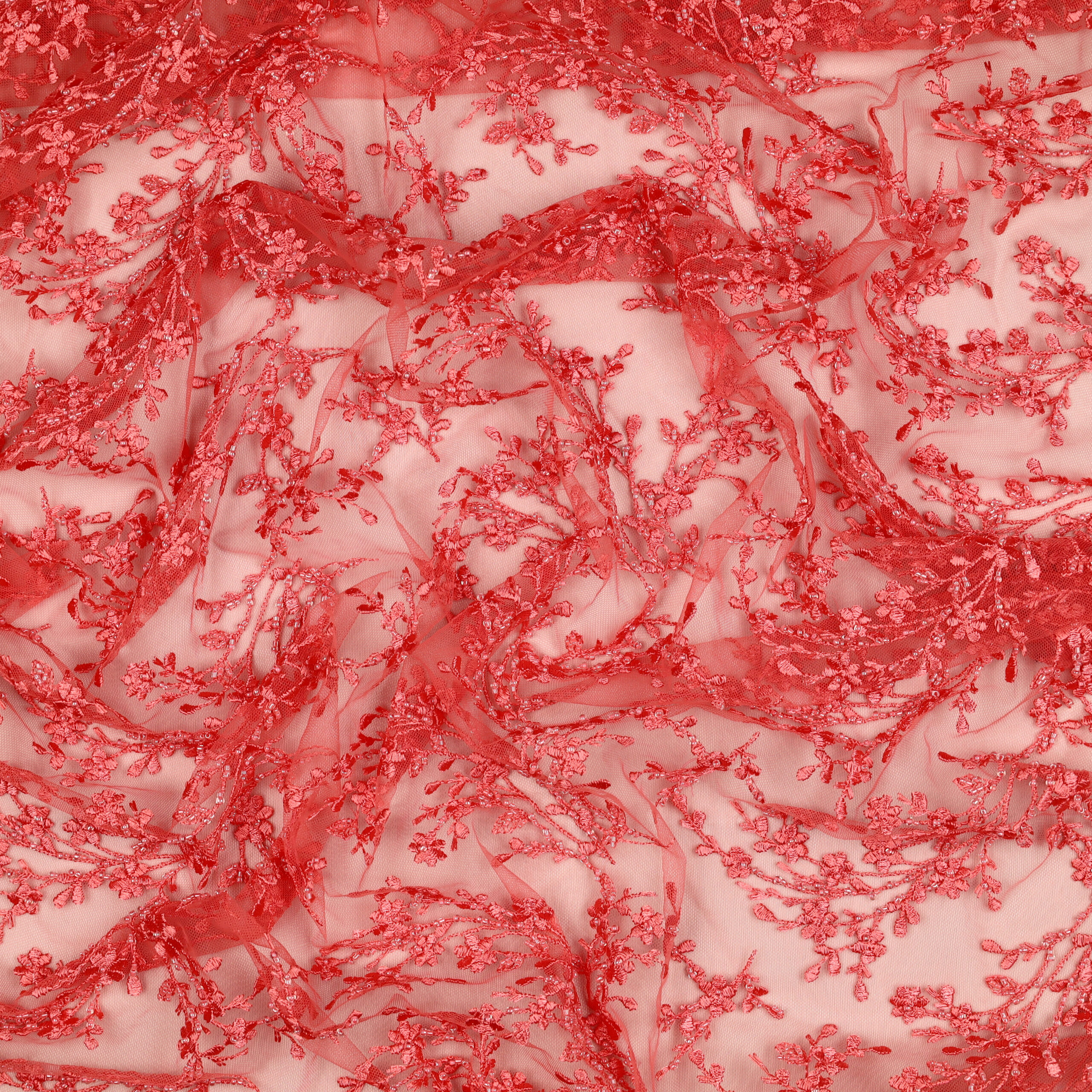 Home Tipi di Tessuto Macramè Pizzo Macramè Pregiato – Fantasia Ramoscello – al Metro – Rosso