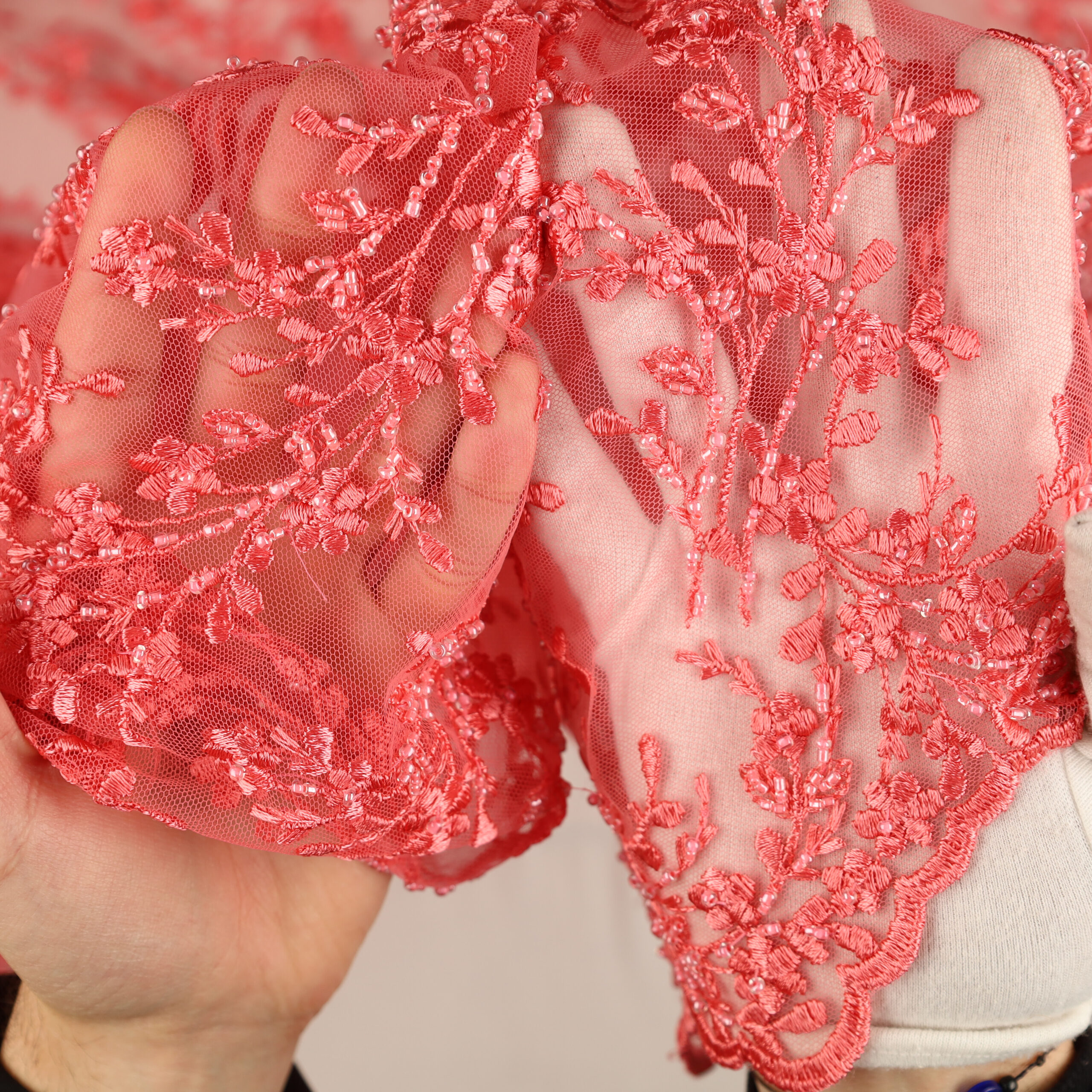 Caratterizzato da una struttura ricca e materica, il nostro macramè è la scelta d’elezione per designer e sarti che mirano a creare abiti da sposa indimenticabili, corpetti scultura e dettagli per cerimonie di lusso. La sua trasparenza sofisticata e i motivi floreali definiti donano volume e movimento, trasformando ogni creazione in un capolavoro di raffinata femminilità.
