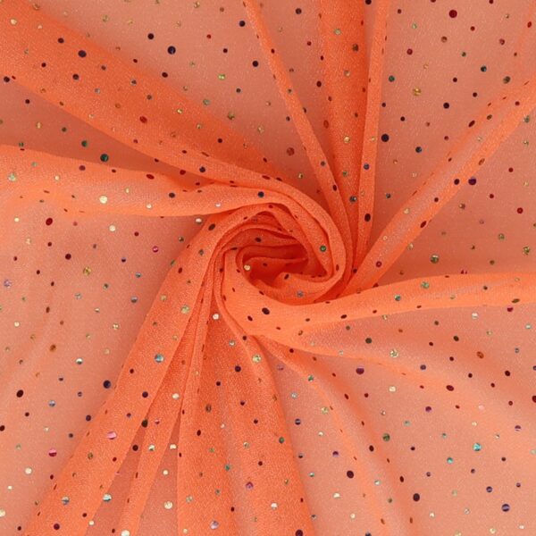 Tessuto Maglina Lurex con Paillettes Big & Small Multicolor - Arancio Fluo - Mezzo Metro 2,99 €