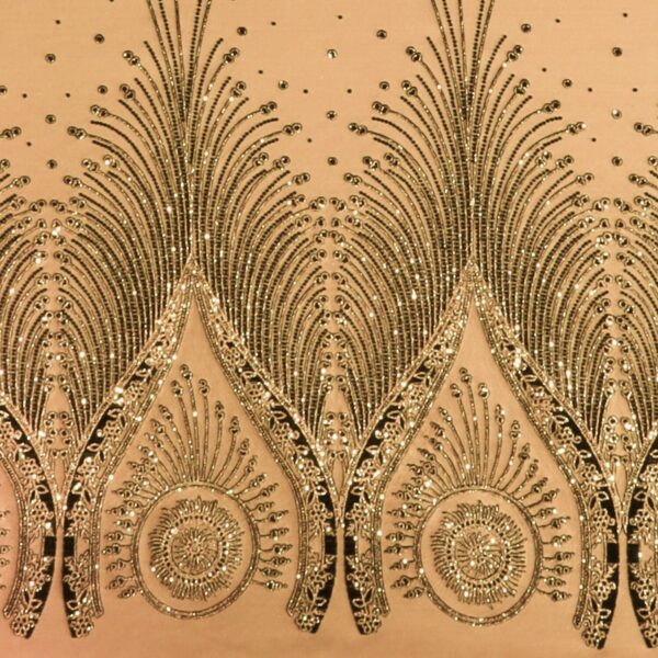 Una delle caratteristiche distintive di questo tessuto è la sua doppia balza, il che significa che la fantasiosa glitteratura è presente su entrambi i lati del tessuto. Questo dettaglio non solo lo rende adatto a progetti che richiedono una visualizzazione completa, ma aggiunge anche un ulteriore livello di lusso e raffinatezza al capo finito.